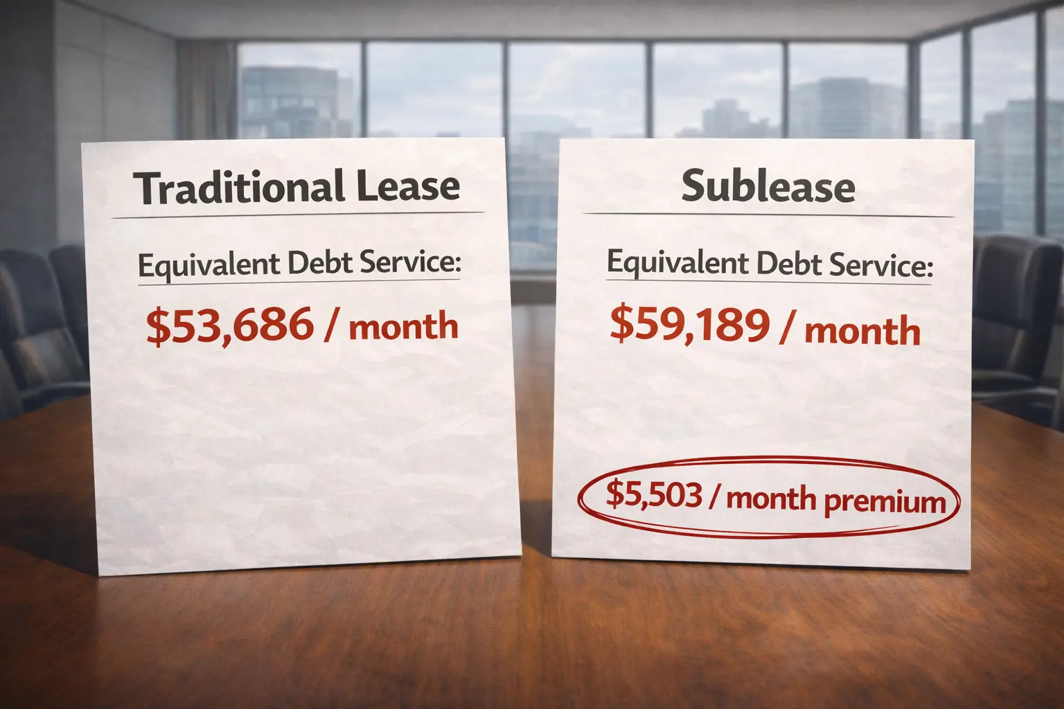 Now you can focus on the strategic question: what does the sublease offer that might justify paying $5,503/month more?