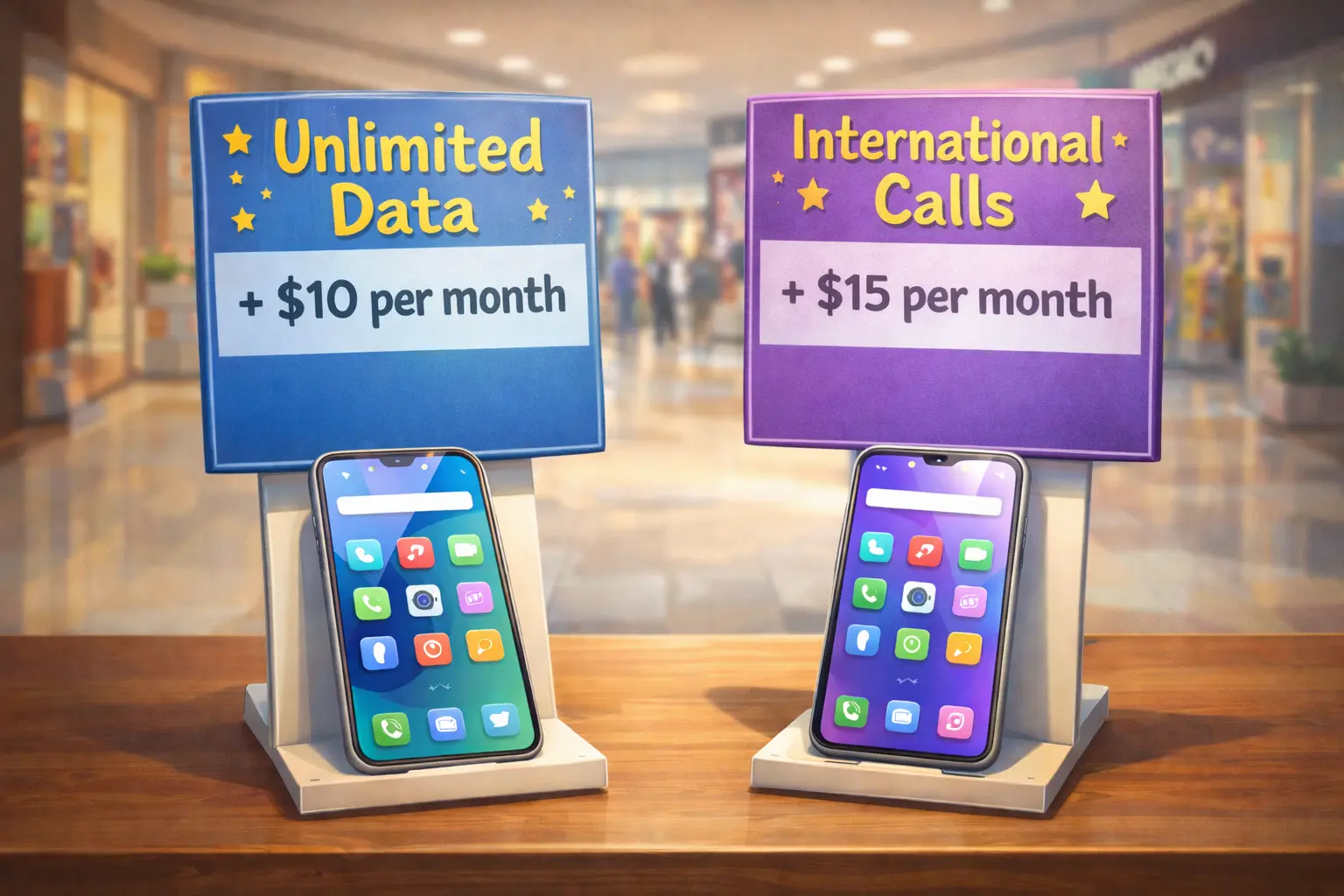 The same way your carrier converts a confusing bundle of data, calls, hardware financing, and contract length into a single monthly bill—then asks: for an extra $15 per month, would you like international calls included?